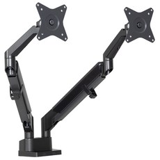 19~27인치 디스플레이를 수용하는 듀얼 모니터암으로, 디스플레이를 원하는 위치로 쉽게 이동 및 조정 가능